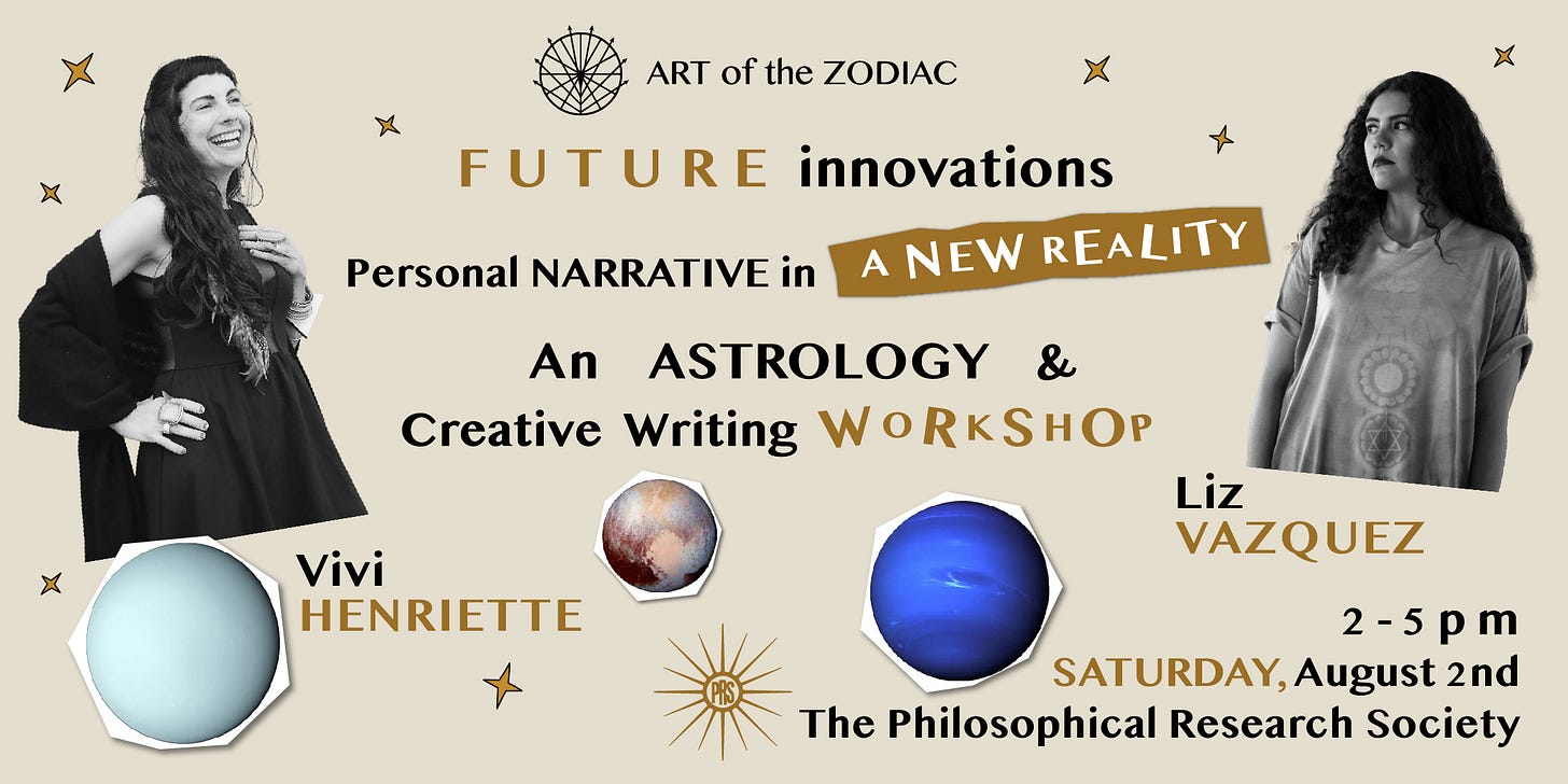 Join Liz and I this Saturday at the Philosophical Research Society for the latest edition of our astrology and writing workshop series, Future Innovations: Personal Narrative In A New Reality.
